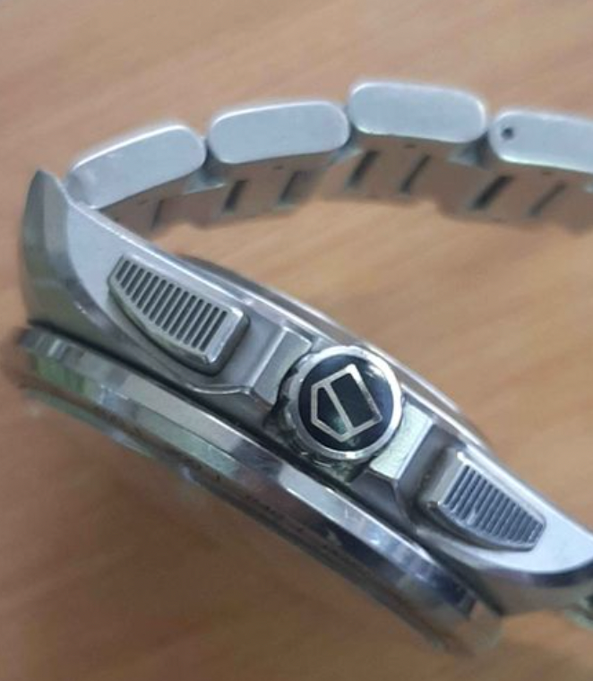 Automatic self-winding movement. Stainless steel case 43 mm in diameter. Sapphire crystal exhibition case back. Screw-down fluted crown. Stainless steel bezel with tachymetric markings. Scratch-resistant sapphire crystal. Black dial with luminous hands and index hour markers. Minute markers around the outer rim. Date window between the 4 and 5 o’clock positions. 1/10th of a second caliper scale. Stainless steel bracelet with deployment buckle.
